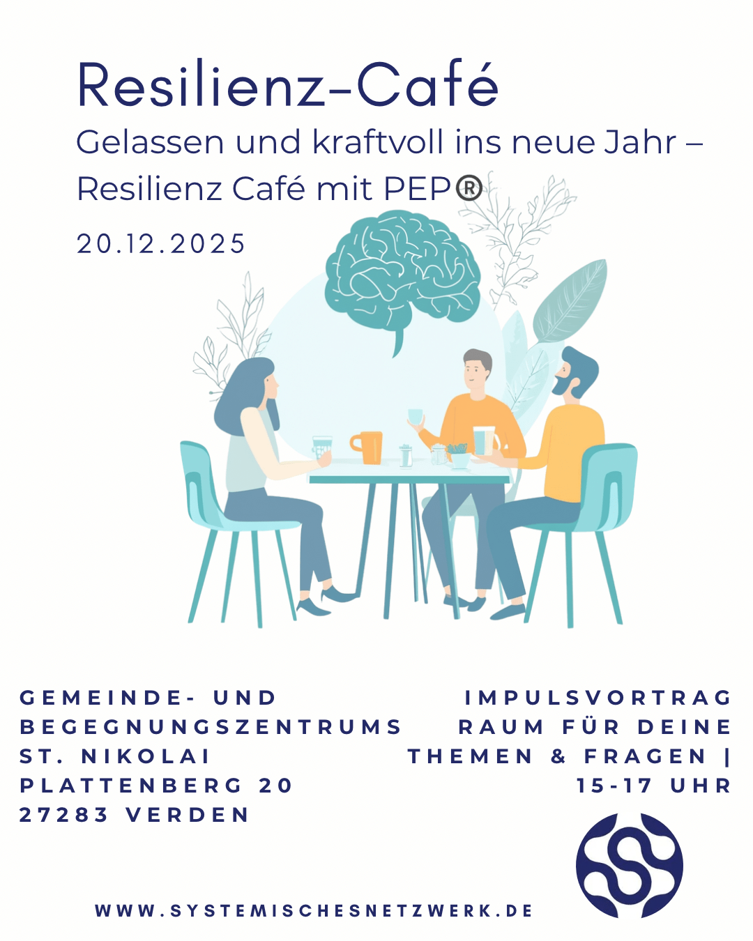 Das Resilienz-Café am 20. Dezember 2025 im Gemeindezentrum St. Nikolai in Verden bietet Impulse für mentale Stärke, Stressregulation mit PEP® und persönlichen Austausch. Organisiert vom Systemischen Netzwerk, richtet sich die Veranstaltung an alle, die mit mehr Gelassenheit und innerer Kraft ins neue Jahr starten möchten.
